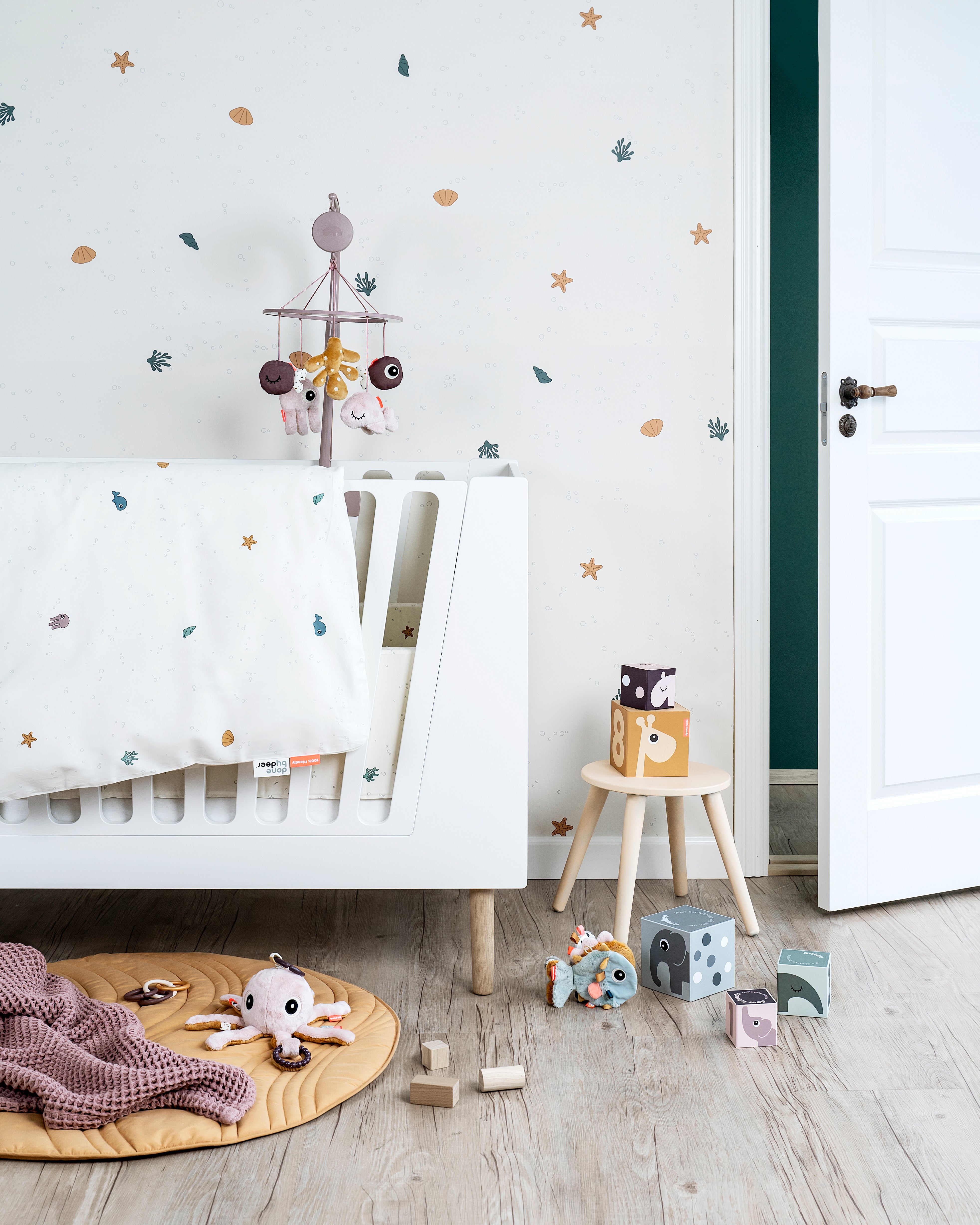 Chaque face dévoile une surprise : chiffres, animaux, motifs graphiques… le tout dans une palette douce et joyeuse qui s’intègre joliment dans toutes les chambres d’enfant.