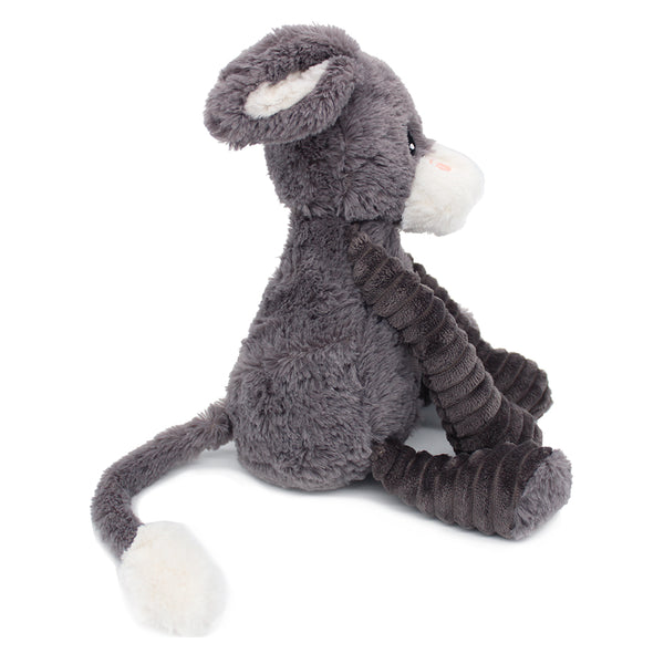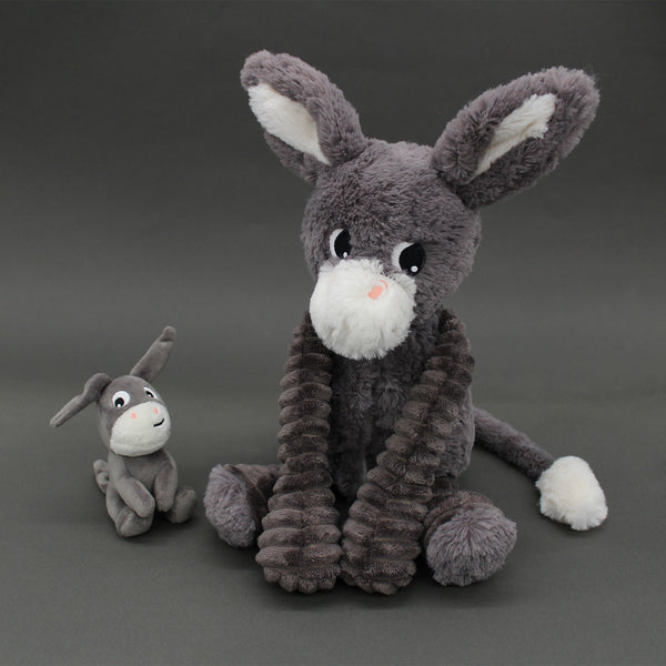 Un tendre duo de câlins : Une maman âne Poitou grise au pelage doux, accompagnée de son bébé discrètement niché dans son ventre. Fabriqué avec soin, ce compagnon de naissance est conçu pour les tout‑petits, dès la naissance. La matière extérieure combine velours côtelé et velours à poils longs pour une sensation de douceur suprême au toucher. Elle accompagnera bébé dans ses premières découvertes, ses siestes comme ses instants de jeu câlin.