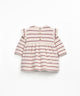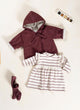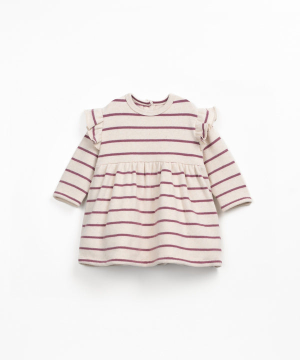 Avec ses rayures prune sur fond écru et ses petits volants aux épaules, cette robe bébé en coton recyclé respire la simplicité élégante. Sa maille souple et légèrement extensible permet une liberté totale de mouvement, tout en gardant bébé bien au chaud.