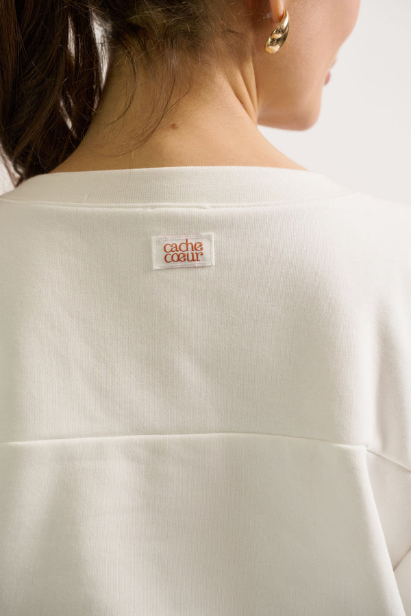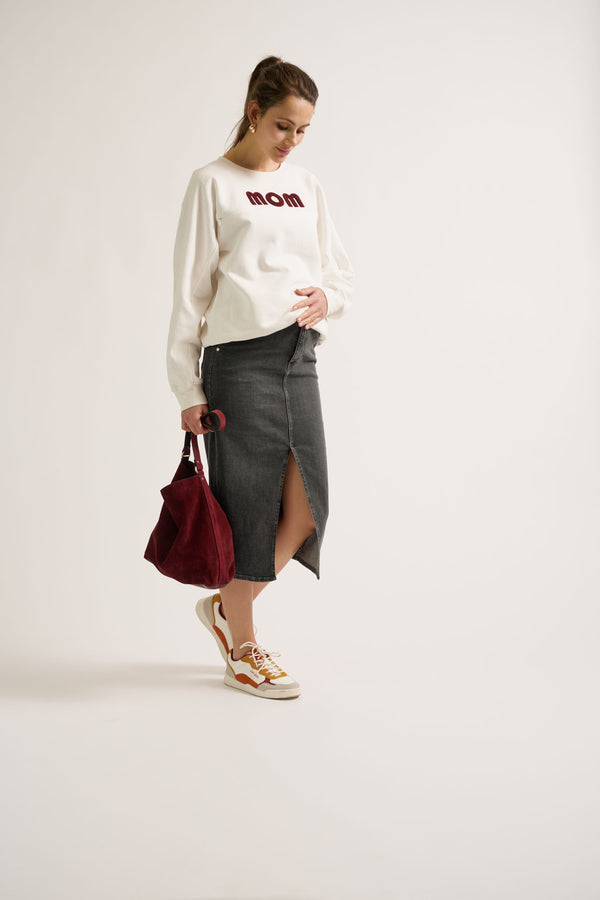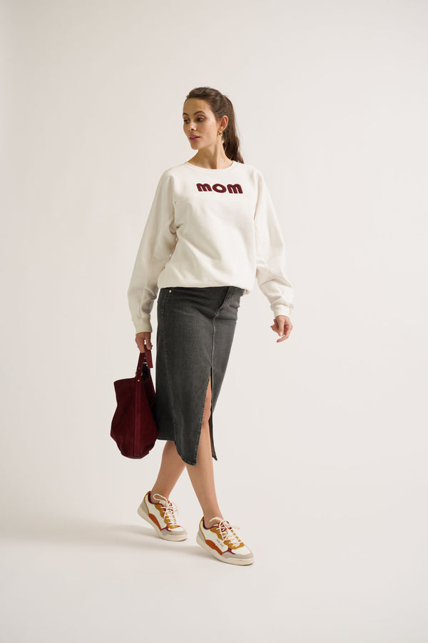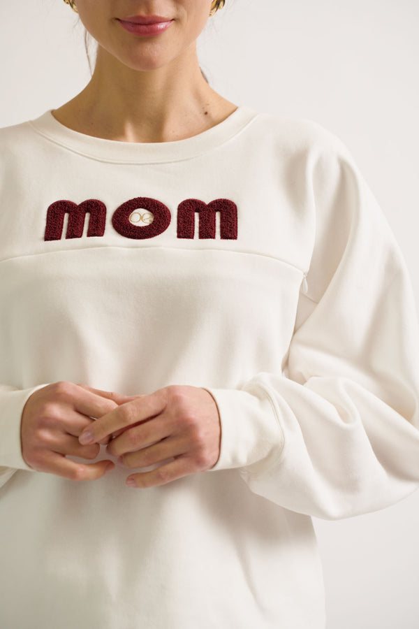 Avec son inscription “MOM” en bouclettes brodées, ce sweat célèbre la maternité avec fierté et tendresse. Sa coupe droite et ses manches légèrement bouffantes offrent un confort absolu, tout en restant moderne. Pensé pour les jeunes mamans, il cache une ouverture zippée horizontale très discrète, parfaitement intégrée sous la poitrine, pour allaiter facilement et en toute sérénité.
