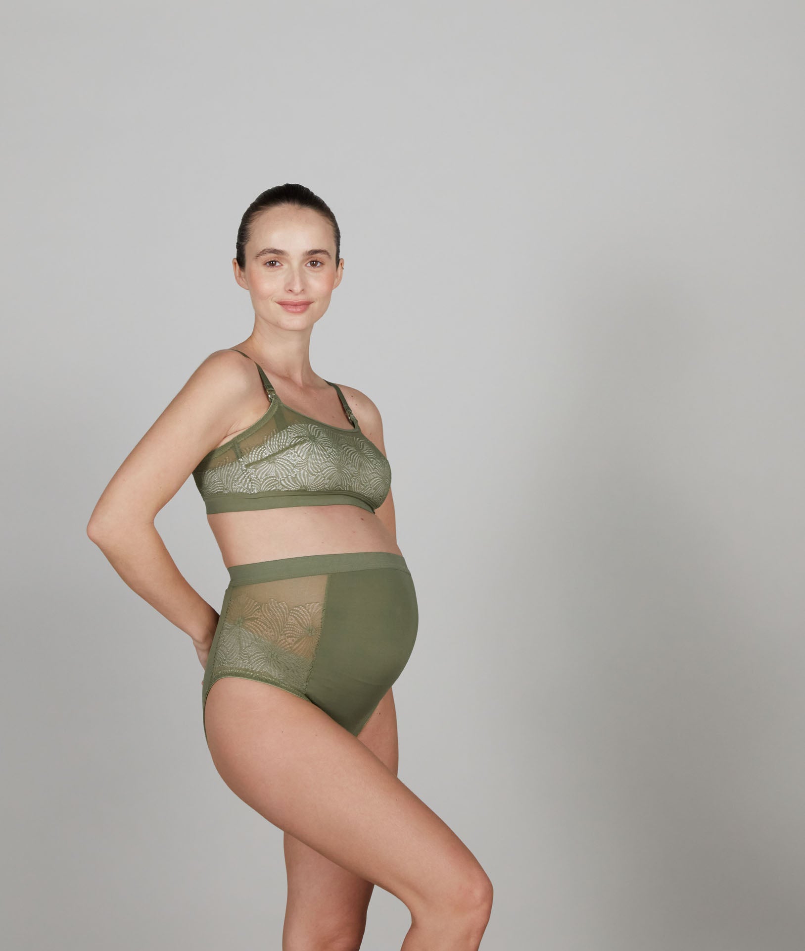 De kaki zwangerschapsbeha zonder beugel Dahlia, een ware weergave van Franse elegantie, zal u begeleiden tijdens uw zwangerschap en tijdens het geven van borstvoeding. Deze laatste combineert met verfijning het comfort en de functionaliteit van een echte bh zonder beugel.
