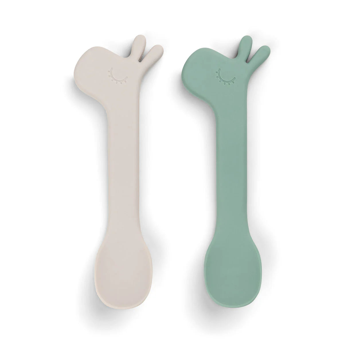 Ce lot de deux cuillères pratiques est composé d'une cuillère verte et d'une cuillère sable. Parfaites pour manger tous les plats préférés et essayer de nouveaux aliments.