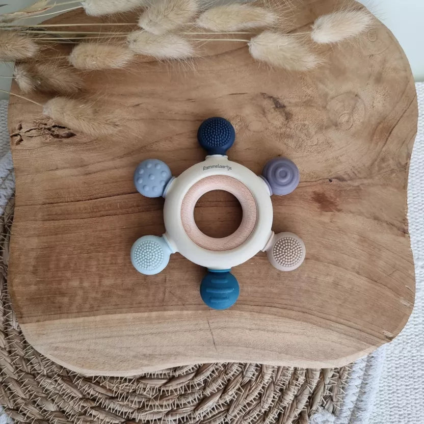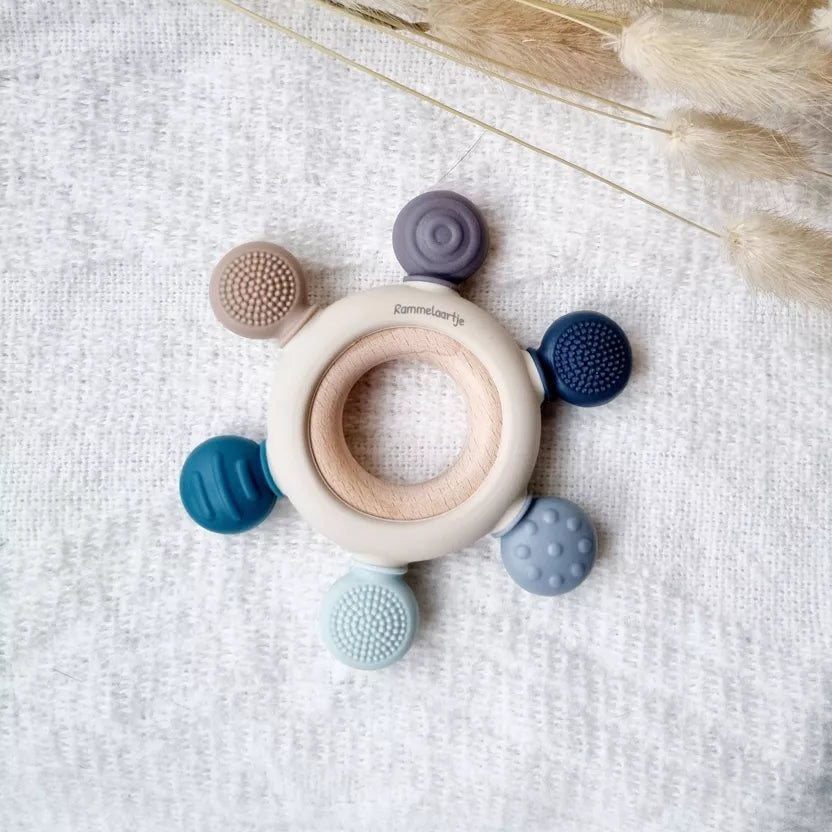 Imaginé par Rammelaartje et fabriqué avec soin, ce hochet combine esthétisme scandinave et fonctionnalité bien pensée. Une création douce, ludique et responsable, à glisser dans toutes les petites mains curieuses.