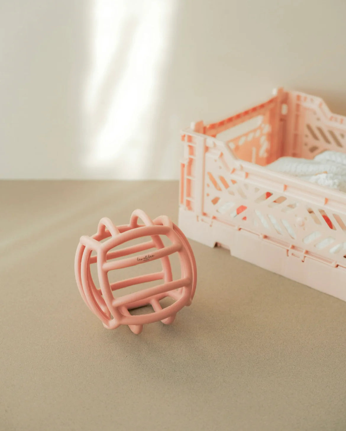 De grote gaten en het zachte materiaal zorgen ervoor dat hij gemakkelijker vast te pakken is. Het kind pakt het vast, draait het en speelt veilig.