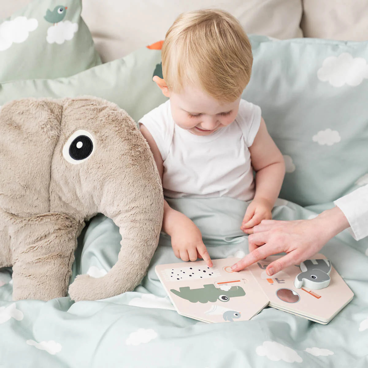 En jouant, votre petit devient super fort en racontant des histoires et entraîne ses petites mains. Elphee adore quand il montre des choses avec son doigt et qu'il fait vivre le livre ! Et devinez quoi ? La figurine d’Elphee est fabriquée en bois tout doux avec de la peinture sans danger pour que tout soit parfait pour votre enfant. Pointer les pages permet à votre bébé d'améliorer sa coordination œil-main.