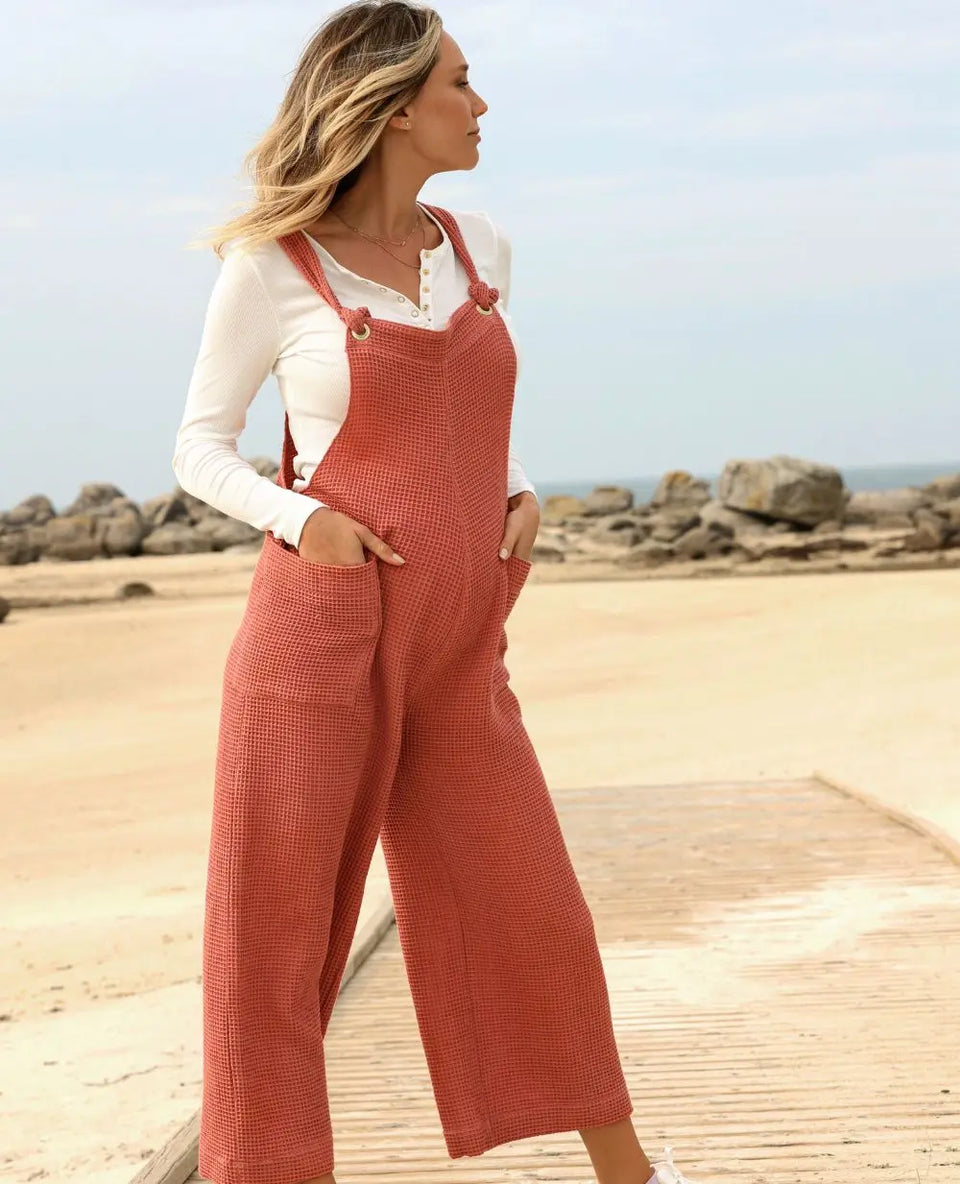 Word verliefd op de zwangerschaps- en borstvoedingsoverall Maya Cache Coeur . Dankzij de honingraatstructuur en toegang tot borstvoeding volgt hij je tijdens je ontdekkingstocht door het leven als moeder, en zelfs daarna. Je kunt je look ook helemaal samenstellen door de overall te combineren met de mooie Suzanne top.