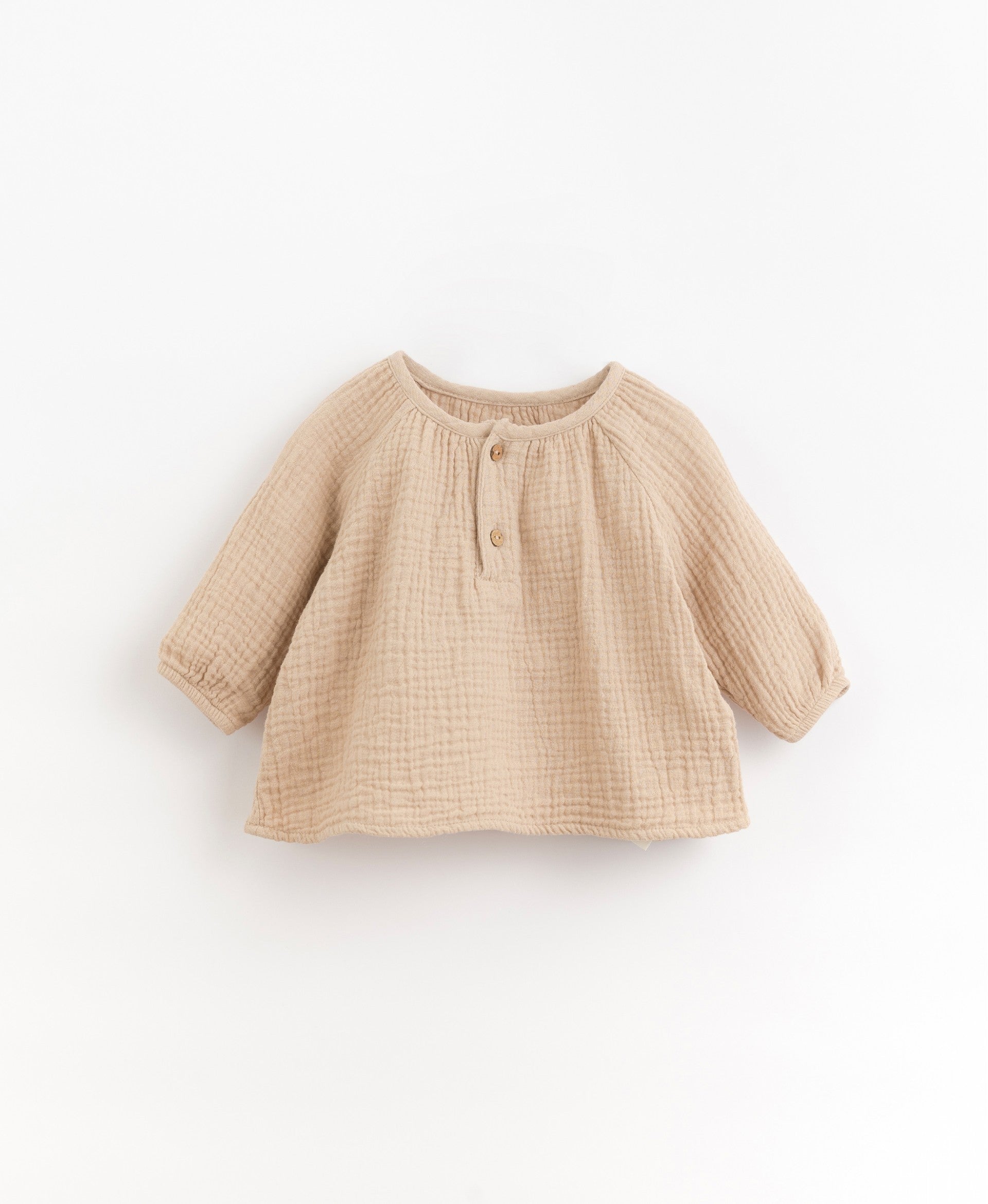 Dit T-shirt is gemaakt van biologisch katoen met jerseysteek. Het model heeft een ronde hals, lange mouwen, gestikte details van binnen naar buiten op de armopening en onze appelprint. Alle grondstoffen die in dit stuk worden gebruikt, hebben de Standard 100-certificering van OEKO-TEX, waardoor het vrij is van stoffen die schadelijk zijn voor de kinderhuid.