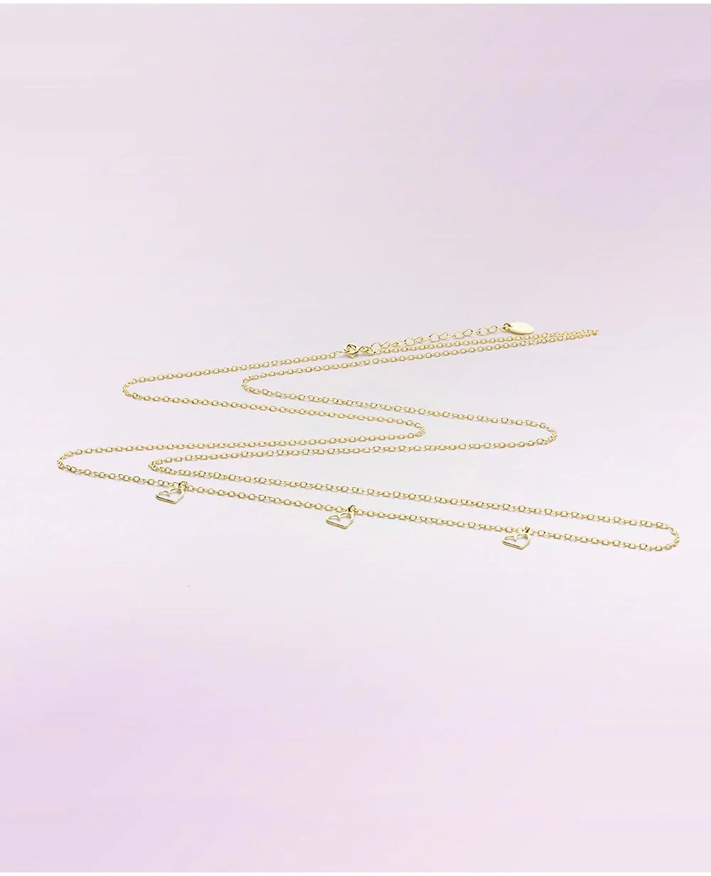 De zilveren of gouden ketting kun je combineren met een zwangerschapsbola, zodat je een uniek sieraad krijgt dat bij je past. Deze ketting heeft aan één kant drie kleine hartjes. Hij is 110 cm lang en 10 cm verstelbaar. Voor de afwisseling, afhankelijk van uw wensen en uw outfits, vindt deze ketting snel zijn plaats in uw juwelendoos!