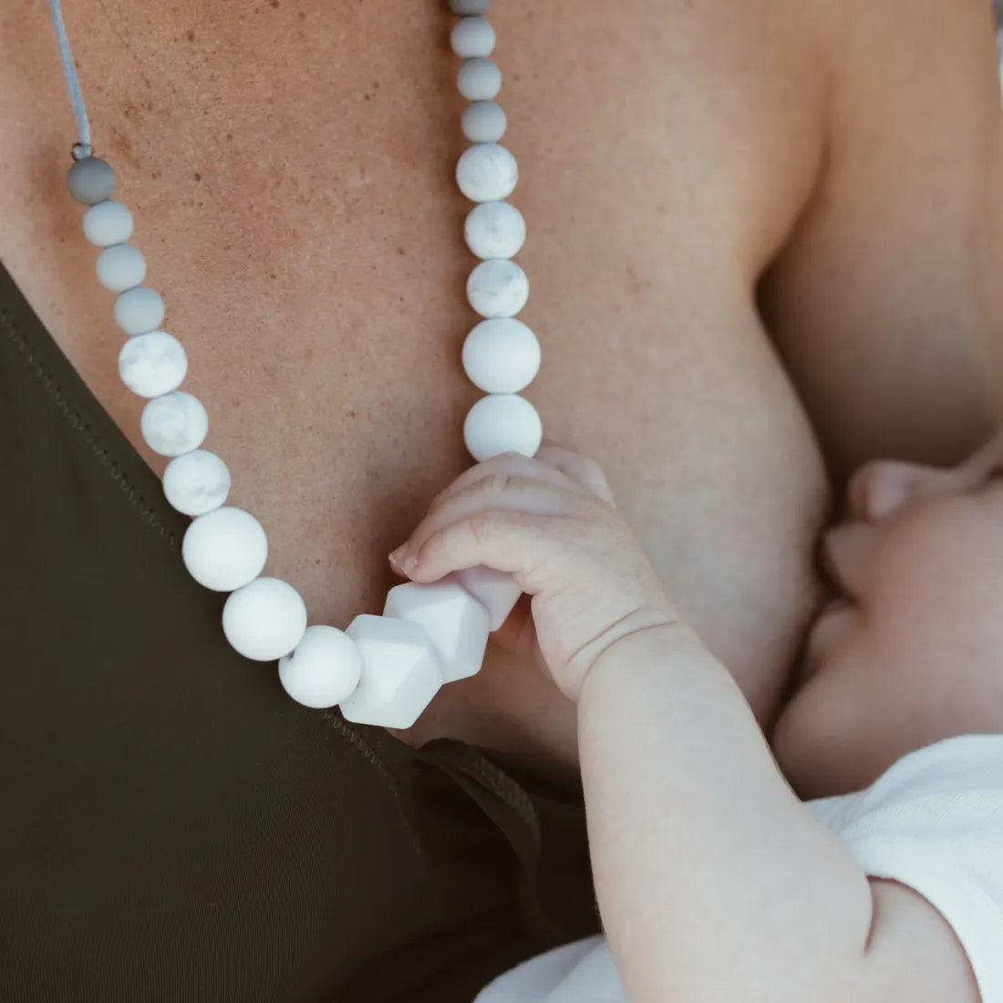 De melkdraag- en borstvoedingshalsband is essentieel om het leven van jonge moeders gemakkelijker te maken en de motorische vaardigheden van baby's te ontwikkelen. Dit sieraad is gemaakt van siliconen van voedingskwaliteit en is ideaal om de baby bezig te houden tijdens het geven van borstvoeding of flesvoeding. Deze ketting met een lengte van 65 cm is zowel een bijt-, borstvoedings- als draagketting die zijn plaats vindt om de nek van mama in haar relatie met haar baby. Resoluut vrouwelijk, praktisch en in harmonie met de tijd, de sieraden van MintyWendy, ontworpen en geassembleerd in Frankrijk, passen zich perfect aan het leven van moeders aan en beantwoorden tegelijkertijd aan hun verlangen naar vrouwelijkheid en moderniteit.