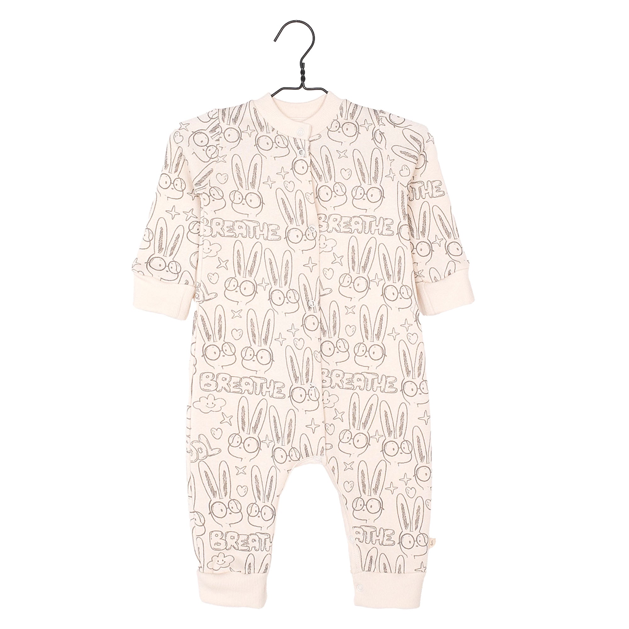 • Een voetloze jumpsuit van geborstelde fleece aan de binnenkant met een drukknoopsluiting bij de buste en het kruis.