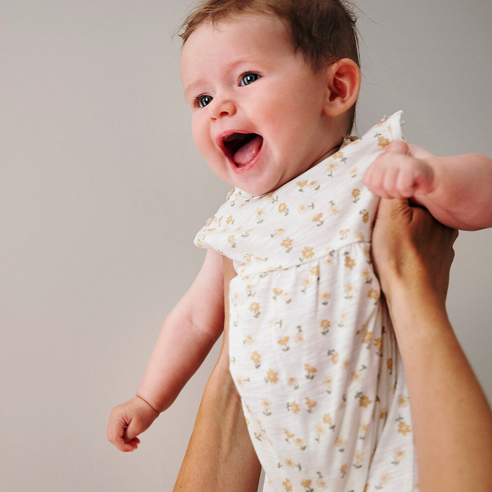 De CARLOS jumpsuit is een mooie lange mouwloze jumpsuit in jersey en zonder voeten. De crèmekleur is vol tederheid met het mooie patroon van wortel of madeliefje. Dit model van 100% biologisch katoen Oeko-Tex® gecertificeerde jersey is zeer zacht en comfortabel. Het is ontworpen in Montpellier en vervaardigd in Portugal door het merk Les Petites Choses.