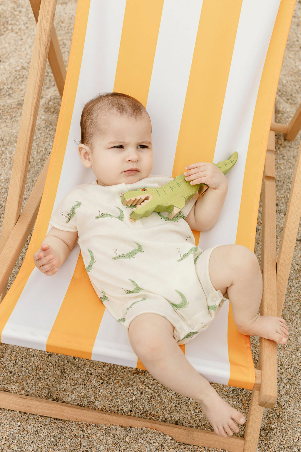 De korte jumpsuit LUDO van het merk Les Petites Choses is een zeer comfortabele jumpsuit voor kleine avontuurlijke baby's. Praktisch, hij sluit met 4 houten knopen aan de voorkant.
