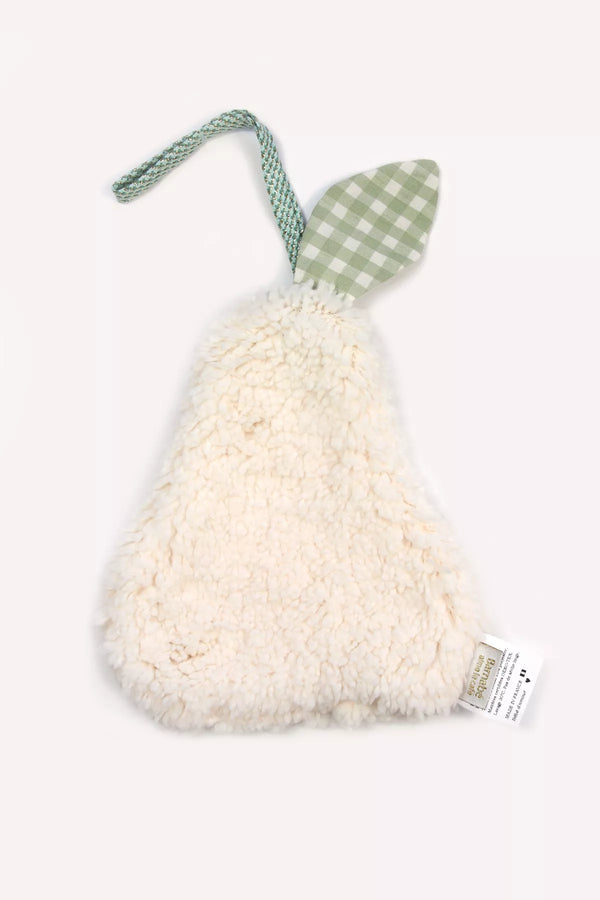 Avec sa forme gourmande de poire et sa texture ultra moelleuse, ce doudou attache-tétine apporte une touche de poésie au quotidien de bébé. Conçu en tissu sherpa bouclette crème, il est à la fois rassurant, doux et facile à manipuler par de petites mains.