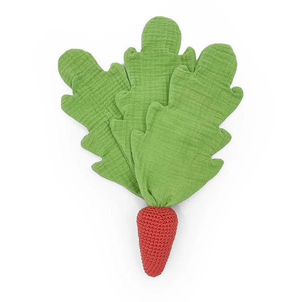 Sa forme est pensée pour sensibiliser bébé à la nature, à la diversité des fruits & légumes et à l’alimentation saine. Un jouet mignon pour une éducation green & engagée dès le premier âge. Ce jouet est fabriqué par Myum selon les méthodes artisanales et éthiques traditionnelles. Sa qualité, ses détails minutieusement travaillés et sa solidité en font un produit d’exception validé par Vanille Coton.
