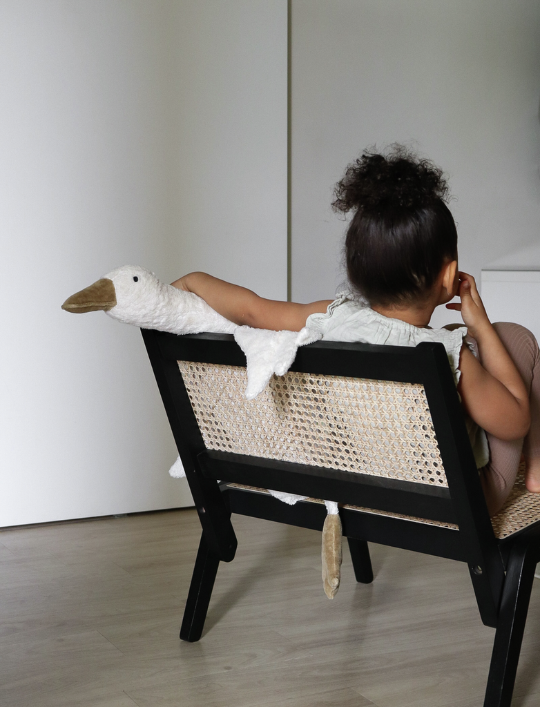 De grote Senger Naturwelt-ganzen zijn heel bijzondere, handgemaakte, milieuvriendelijke knuffels. Het is tegelijkertijd een knuffel en een warm kussen. Biologisch katoen maakt ze zacht en comfortabel. Binnenin de grote dieren zit een uitneembaar katoenen kussen gevuld met biologische spelt. Zo kan de knuffel worden omgetoverd tot een verwarmingskussen.
