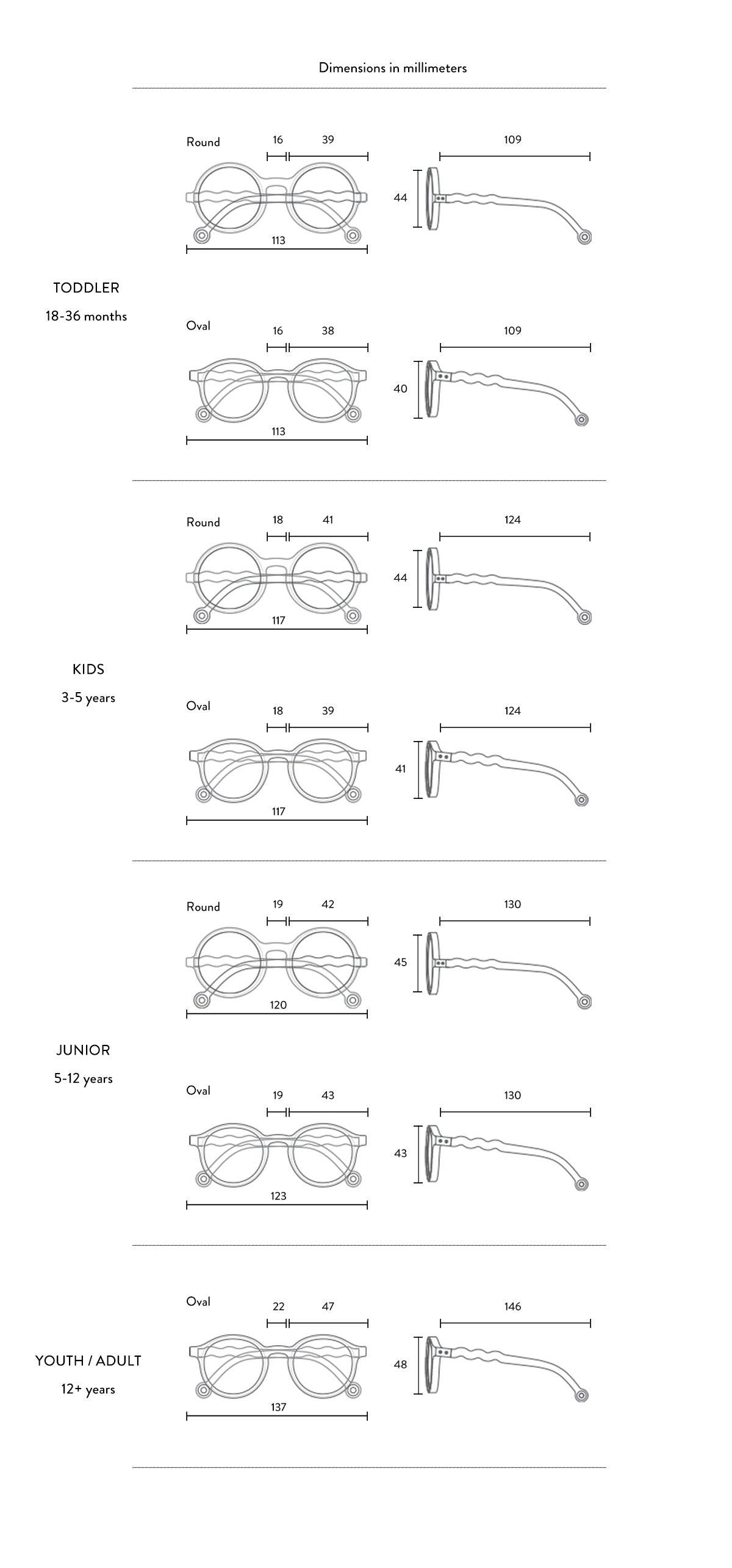 - Taille 0-1 ans (longueur des branches 102 mm)
