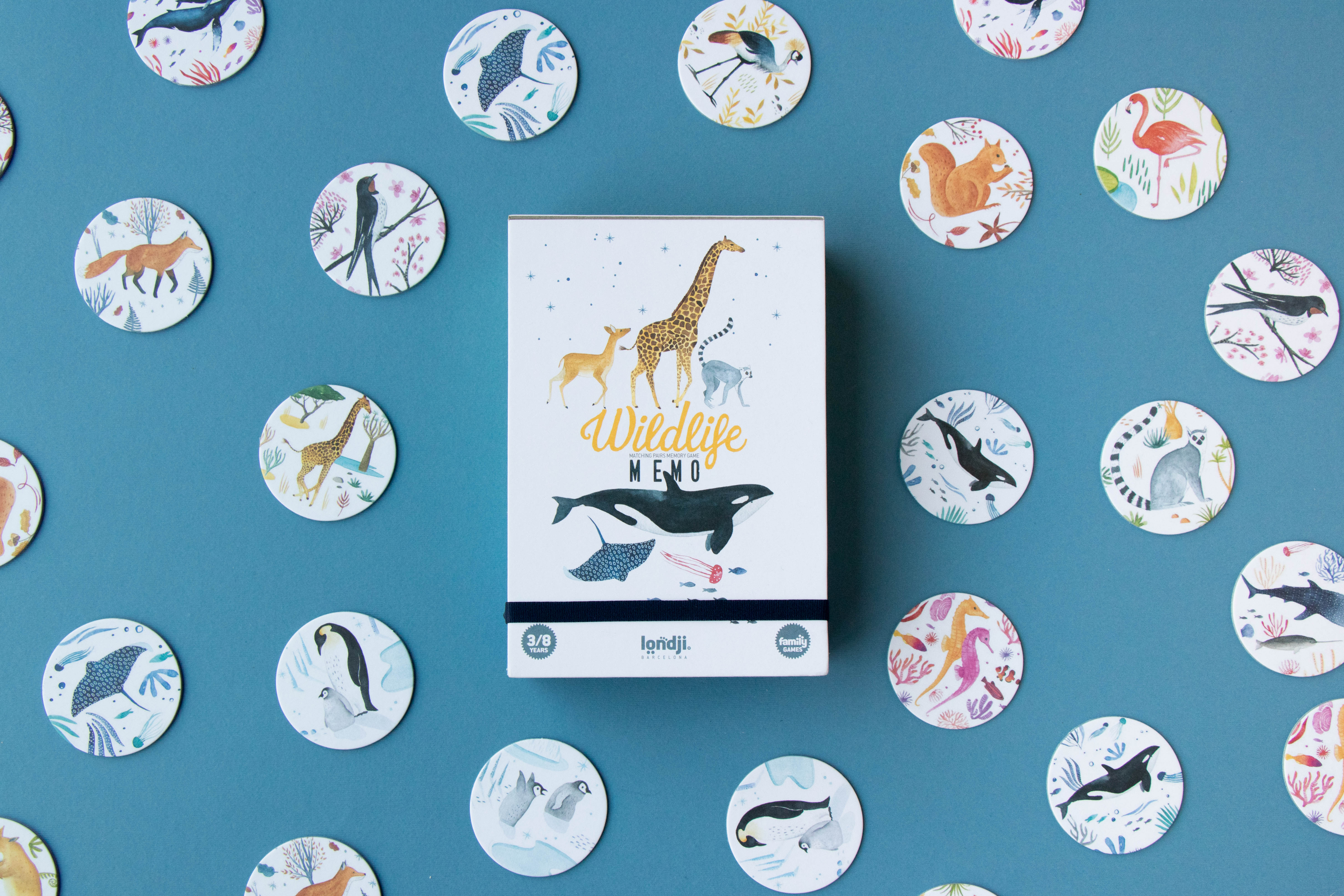 Avec 32 illustrations d'animaux sauvages, ce jeu est conçu et fabriqué à Barcelone. Un jeu pour toute la famille sélectionné par Vanille Coton auprès du fabricant Londji.