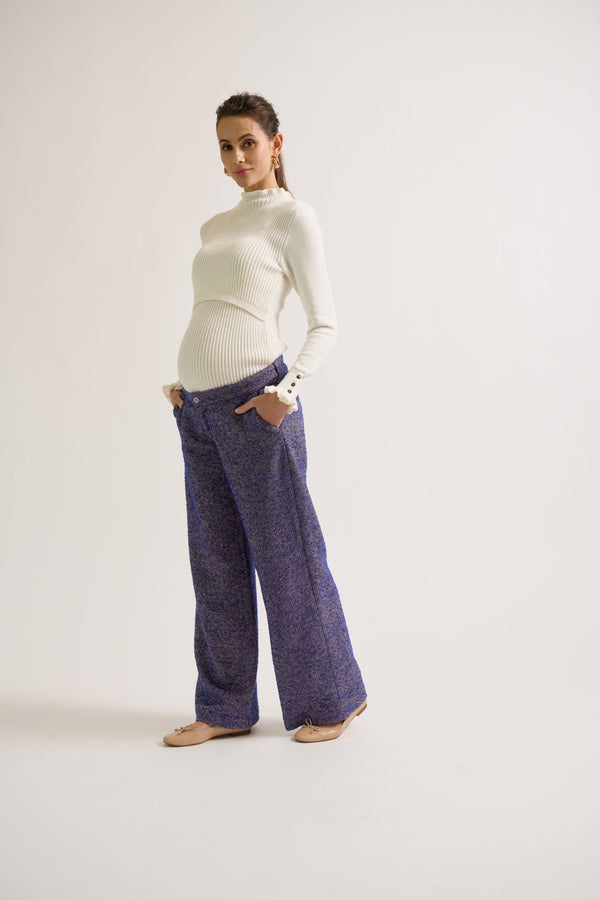 Allure ample, confort inégalé et matière précieuse : le pantalon de maternité Kate enveloppe les futures mamans avec douceur et modernité. Confectionné dans un tweed souple au tissage chevronné, il allie une coupe fluide à une taille haute ajustable, pensée pour évoluer avec les mois. Parfait pour le quotidien comme pour les moments plus habillés, ce pantalon offre une liberté de mouvement bienvenue, sans compromis sur le style.