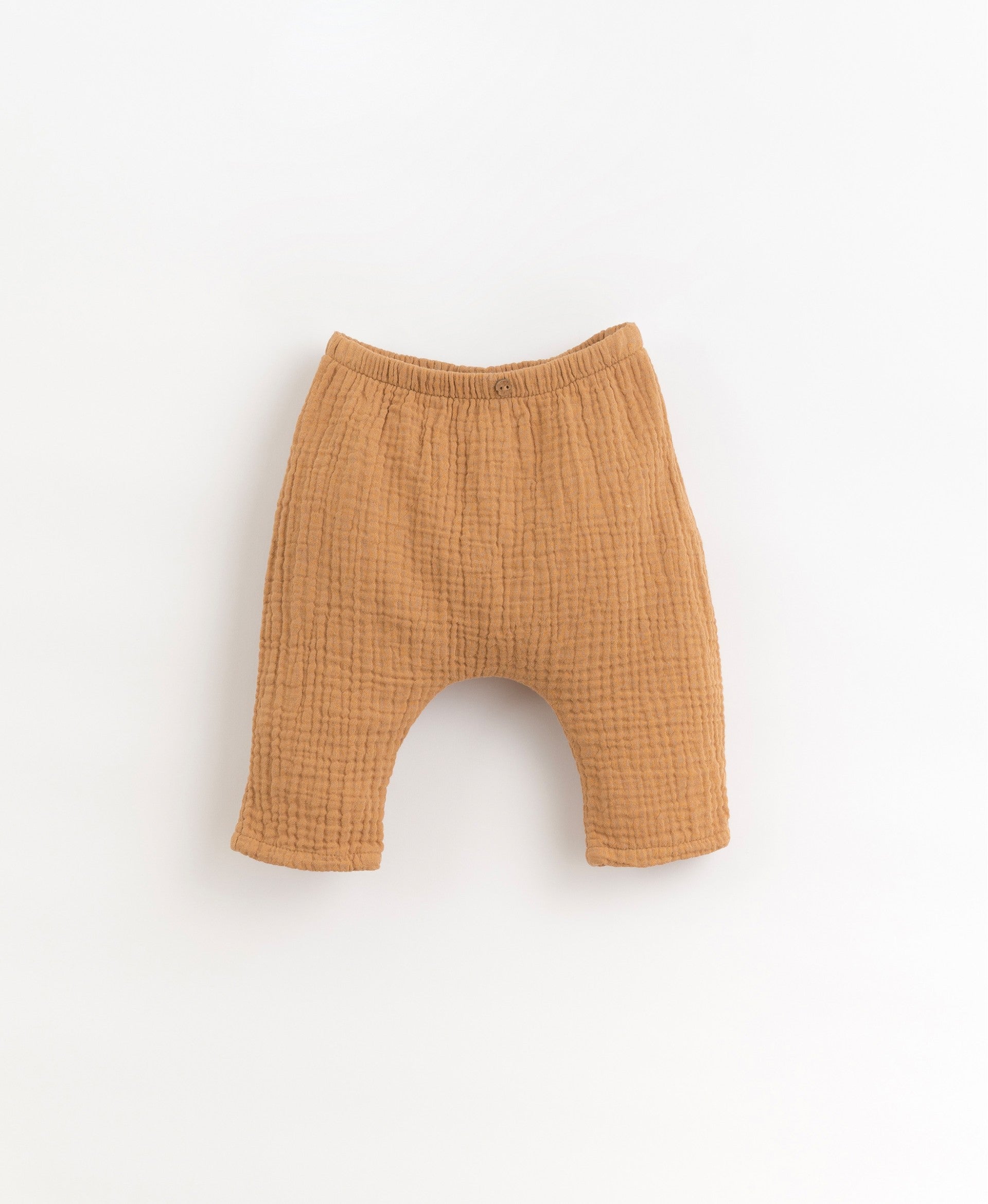 Dit schattige en comfortabele broekje van het merk Play Up is gemaakt van biologisch katoen. Het kleine modedetail: een decoratieve kokosnootknoop in de taille. Licht en ademend, dit zomerkleurige model heeft een elastische taille.