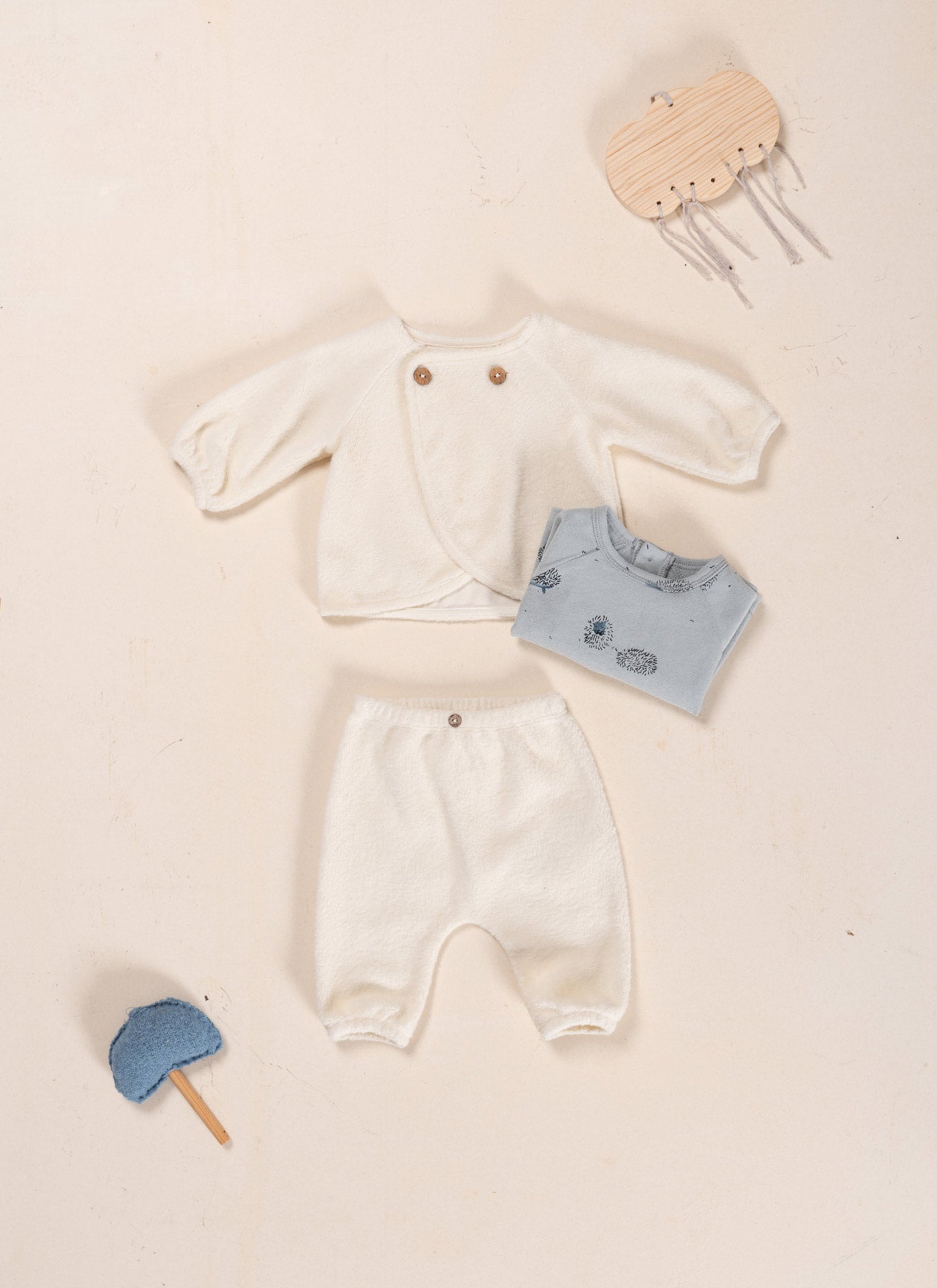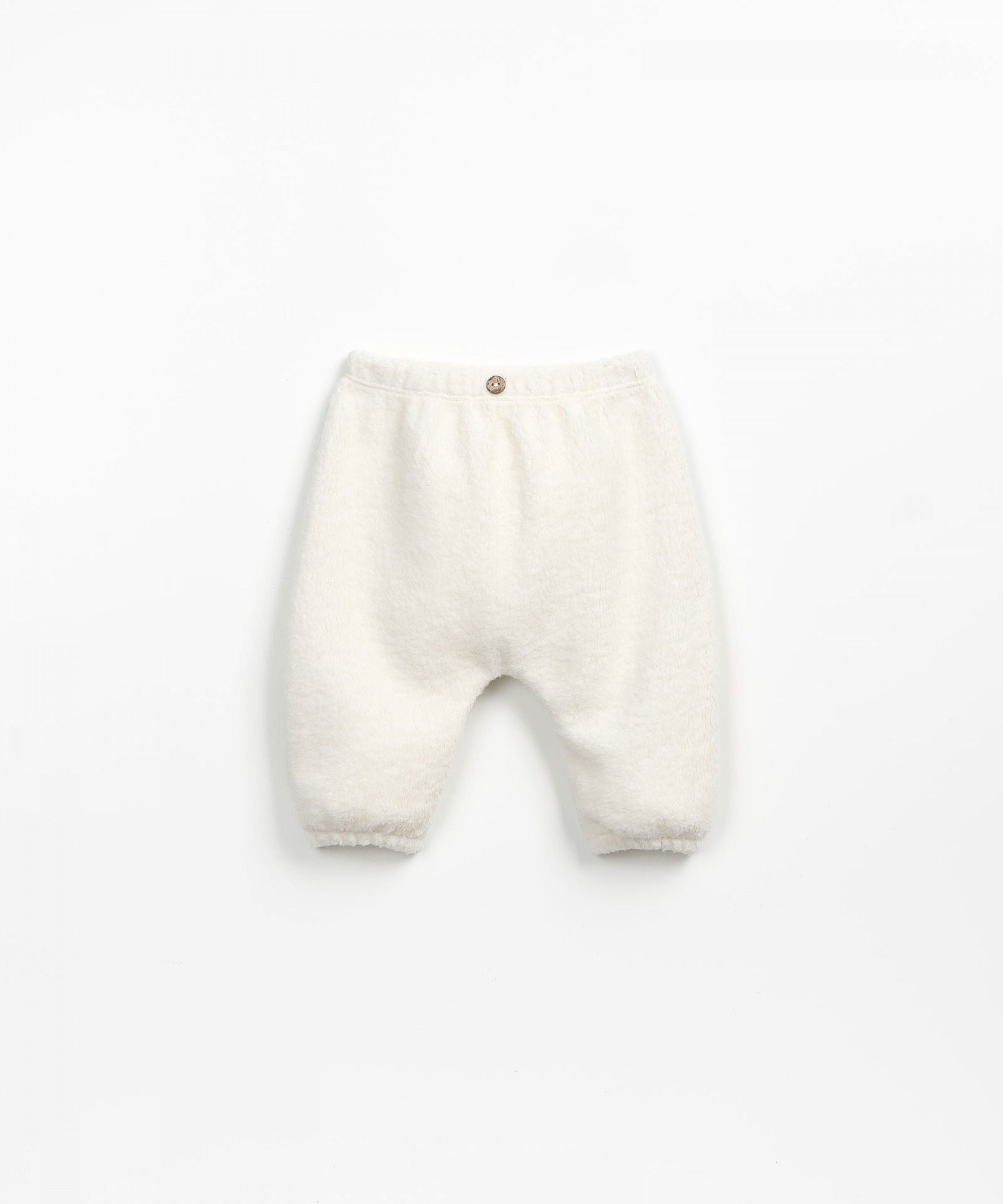 Deze broek van Play Up is gemaakt van sneeuwkleurig biologisch katoen. Het model heeft een elastische taille en een decoratieve kokosknoop. Het zal van uw baby een kleine teddybeer maken om te knuffelen. Te combineren met het bijpassende vest van hetzelfde merk.