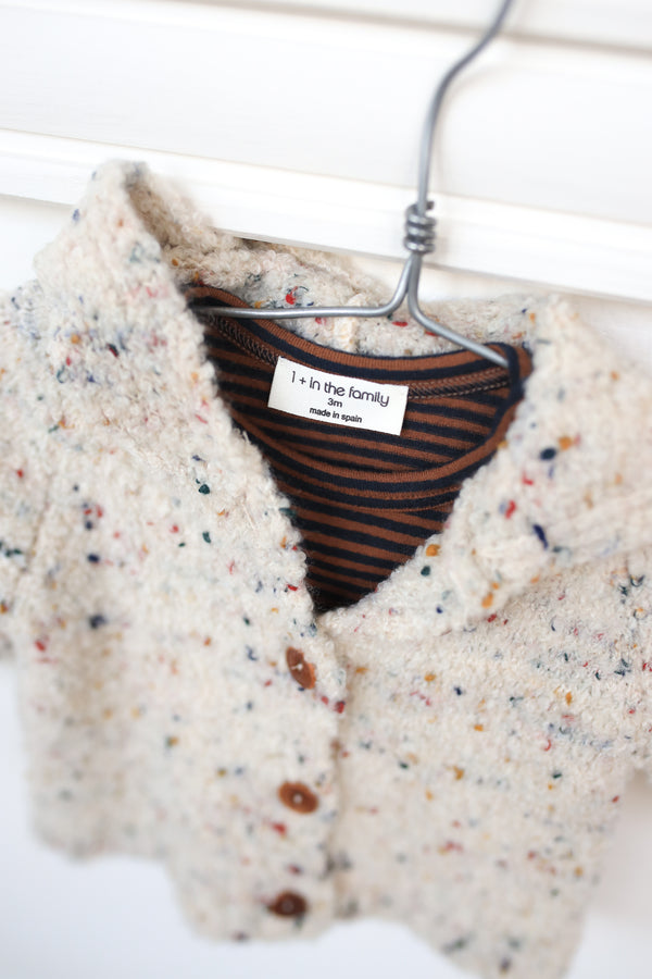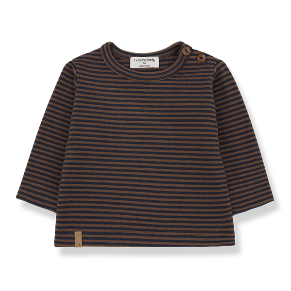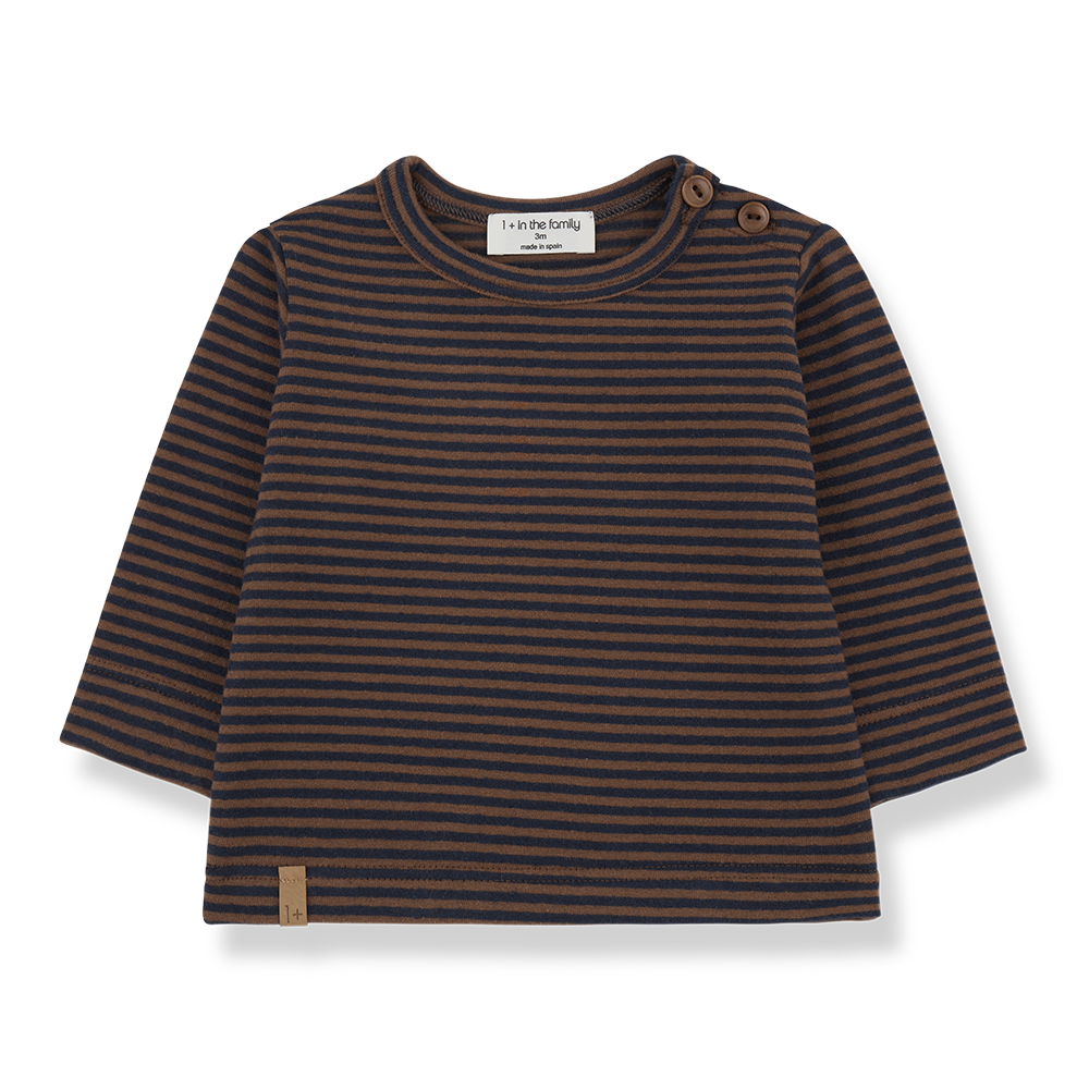 Le polo OLAF est une pièce douce et confortable, pensée pour les premières saisons fraîches. Avec ses fines rayures bleu nuit et marron, il offre un style intemporel et un brin rétro. Les deux petits boutons à l’épaule facilitent l’enfilage, tout en apportant une touche soignée. À associer avec la salopette RIKI pour un look cosy et élégant. Ce modèle est conçu par 1+ in the family et confectionné avec soin en Espagne 🇪🇸, dans une maille souple qui respecte la peau délicate des bébés.