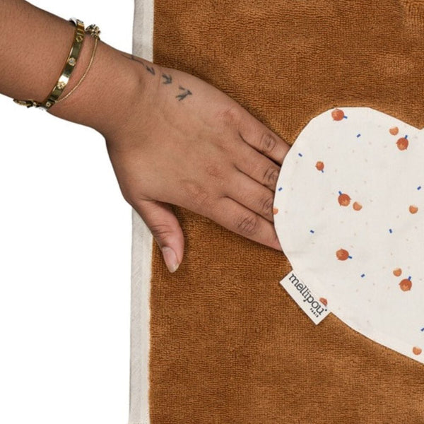 Offrez à votre bébé la douceur et la chaleur d’un cocon dès la sortie de l’eau : le poncho plage et bain bébé “Noisette” de Mellipou est fabriqué avec soin en France dans leur atelier parisien.