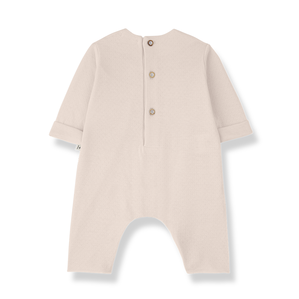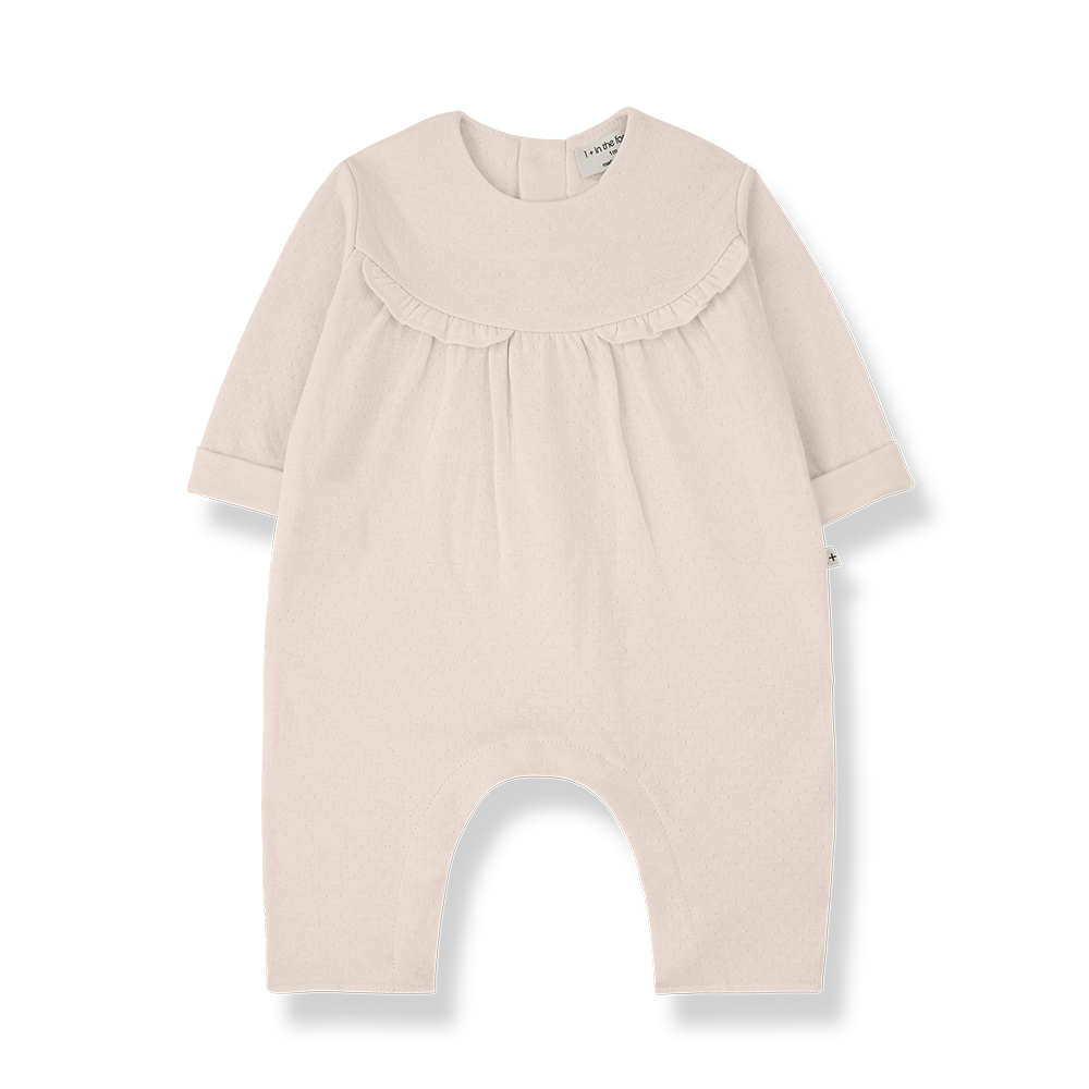 Cette ravissante combinaison bébé signée 1+ in the family incarne l’élégance simple des tout premiers mois. Confectionnée en 100% coton, elle offre une matière naturellement respirante et douce, idéale pour respecter la peau sensible des nourrissons. Sa teinte nude intemporelle, subtile et lumineuse, s’accorde avec tout le vestiaire de bébé. On aime particulièrement son empiècement arrondi délicatement froncé sur le buste, qui apporte une touche poétique et raffinée, ainsi que ses manches longueur coude légèrement retroussées pour une silhouette tendre et moderne.