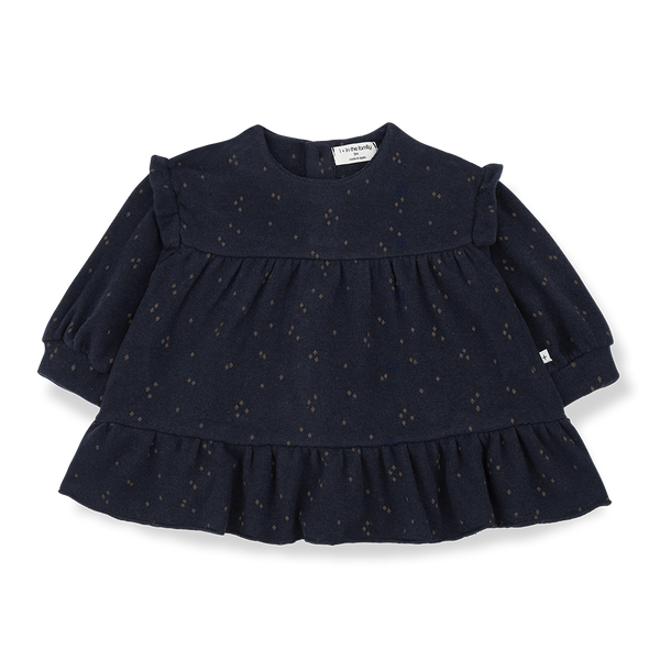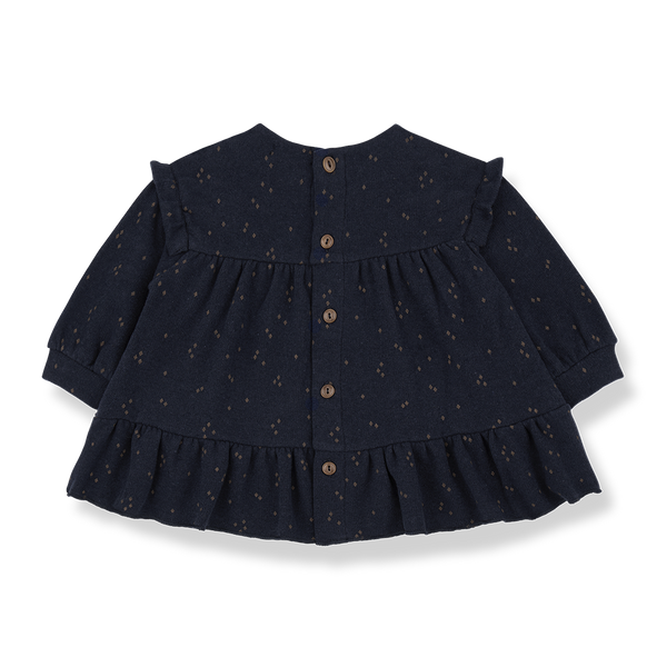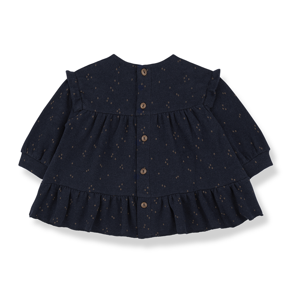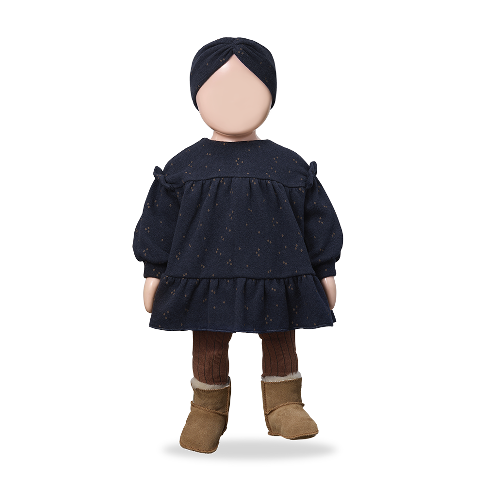 Avec ses petits motifs discrets et sa coupe légèrement froncée, la robe MONIKA enveloppe les bébés dans une tendresse élégante. Confectionnée en  maille chaude et moelleuse, elle est pensée pour l’hiver, sans compromis sur le confort. Les jolis volants à la base et aux épaules, ainsi que la boutonnière intégrale au dos, apportent un charme vintage tout en facilitant l’habillage. Associez-la aux collants SALLY et au bandeau EIRE pour un ensemble raffiné et douillet. Cette création signée 1+ in the family est confectionnée avec soin en Espagne 🇪🇸.