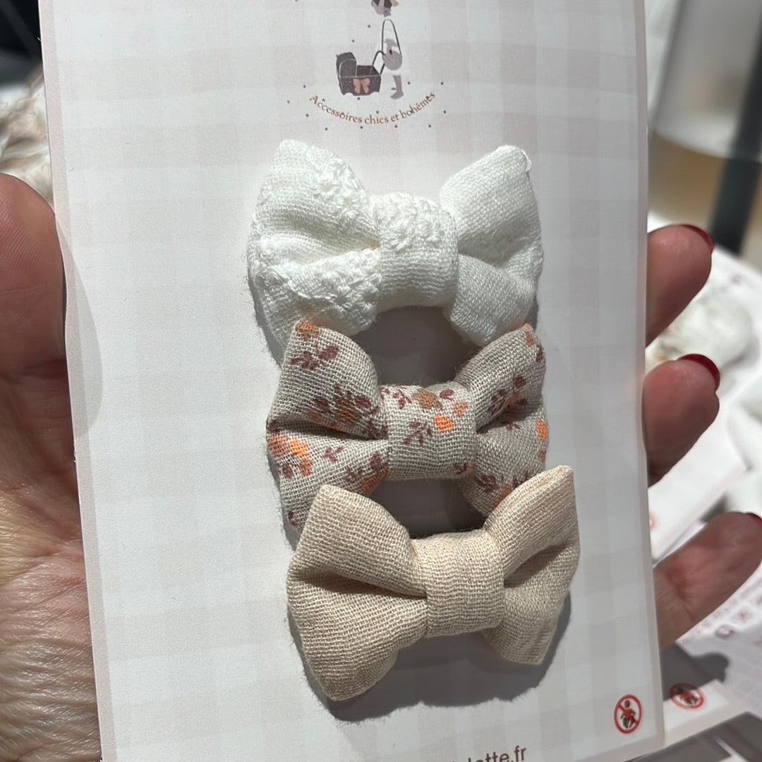 Een klein strikje om outfits te verfraaien. Ontdek het trio Tête de Lylotte-knopen. Ze zijn zeer effectief bij fijn haar of baby's met weinig haar. Elk item is handgemaakt, het uiterlijk kan per product verschillen.